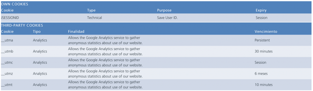 A «cookie» is a small text file that is imperceptibly created on the user’s terminal (PC, smartphone, tablet or any other device) when he/she accesses the Website. Cookies store and recover information about the browsing performed on that equipment